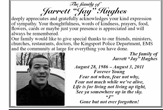 The family would like to extend special thanks to Mr. & Mrs. James Henderson, Mr. and Mrs. Jack and Betsy Ann Pierce; the Kingsport Fire and Rescue Department; Dr. David Ginn and the Staff of Brookhaven Manor.
